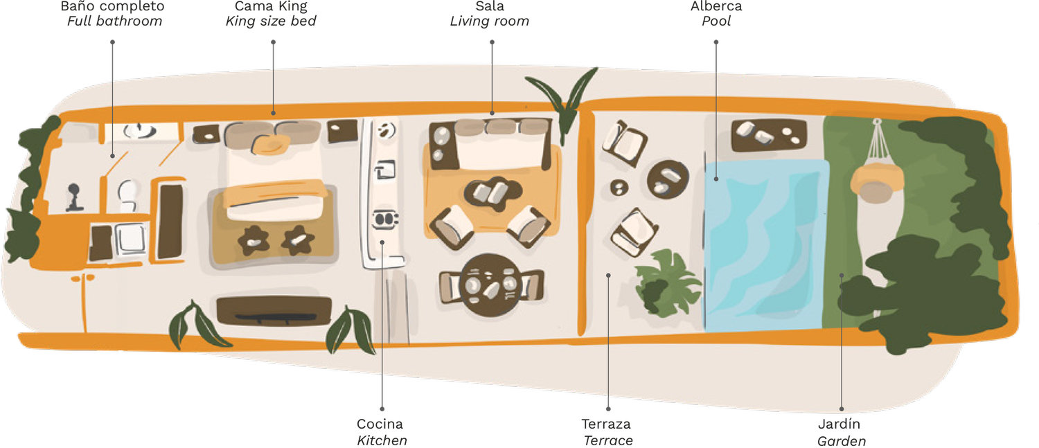 Find peace in your private garden suite, rooted in the nature of Tulum.